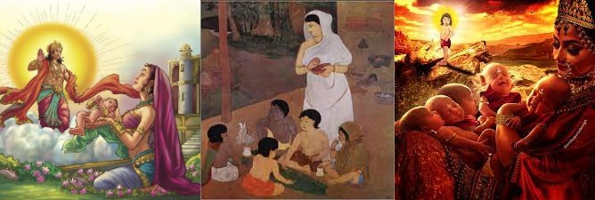Meanwhile, Sage Vyasa, upon calculating the birth signs of Duryodhana and his hundred brothers, warned that they were born under ominous constellations and would grow up with evil and destructive tendencies. He foretold that Duryodhana, the eldest, would become arrogant, cruel, and oppressive, and that his wickedness might one day bring ruin upon the entire Kuru dynasty. Hearing this prophecy, Queen Gandhari was filled with sorrow.