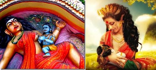 The simple villagers believed her. They took her to Yashoda’s house. That day, Krishna was crying with hunger. Yashoda thought, “This woman has come at the right time. She can feed my son.” She placed Krishna in her arms.