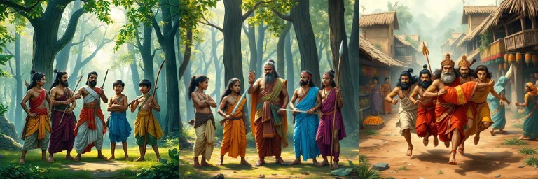 The Guru Dakshina episode represents the culmination of the princes’ education and a decisive test of loyalty. Dronacharya’s demand—that King Drupada be captured—was motivated by a prior humiliation inflicted upon him. While the Kauravas prepared a large military expedition, Arjuna asserted that wisdom and skill rendered such force unnecessary.