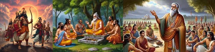 The education of the Pandavas and Kauravas under Dronacharya was instrumental in shaping not only their martial prowess but also their ethical dispositions and political trajectories. The gurukul system at Hastinapura fostered excellence, specialization, and loyalty, yet simultaneously exposed tensions between merit and favoritism, discipline and compassion, and social order and individual aspiration. The Guru Dakshina episode, in particular, illustrates how pedagogical decisions and moral judgments can reverberate beyond the classroom, ultimately contributing to historical and cosmic conflict. In this sense, the Kurukshetra War emerges not merely as a clash of arms, but as the culmination of unresolved ethical contradictions rooted in education itself.