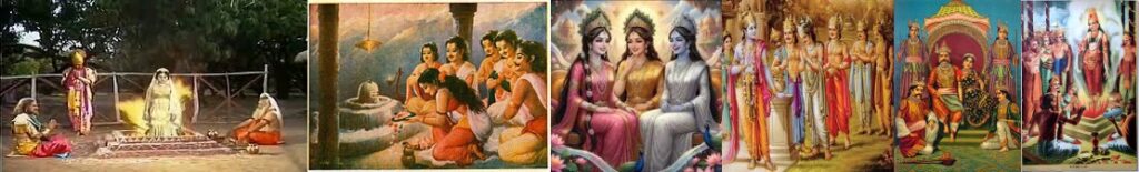 One auspicious day, great sages—Vyasa, Durvasa, Markandeya, Jaimini, and others—arrived at Drupada’s court. Rising from his throne, the king humbly worshipped them and conveyed Lord Shiva’s command to perform a yajna.