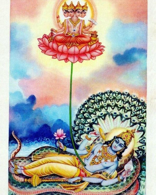 Brahma looked around in wonder, taking in the beauty of the lotus and the majesty of Lord Vishnu. He knew that he had been born from the divine, and that his purpose was to create a universe that reflected the harmony and balance of the lotus.