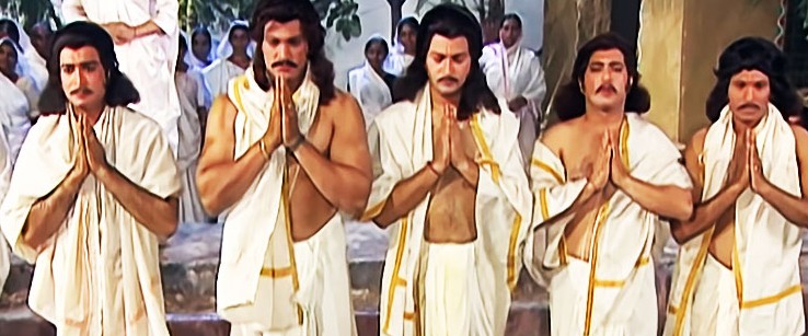 Kirata woman Jayanti, seeking shelter with her five sons, happened to meet Purochana Pandit at a potter’s shed. He promised to give them shelter for the night in the lac house, honoring her request, but told them to wait in the shed and that he would bring them in after the Pandavas had fallen asleep.