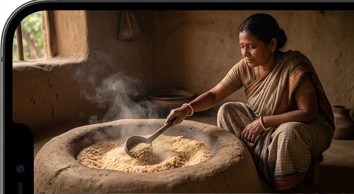 In traditional Odia society, mudhi was long regarded as a food of the economically weaker sections. Its importance lay in its affordability, simplicity, and practicality. Prepared in village households through a careful process of heating parboiled rice in sand or earthen ovens, mudhi required skill but minimal resources.