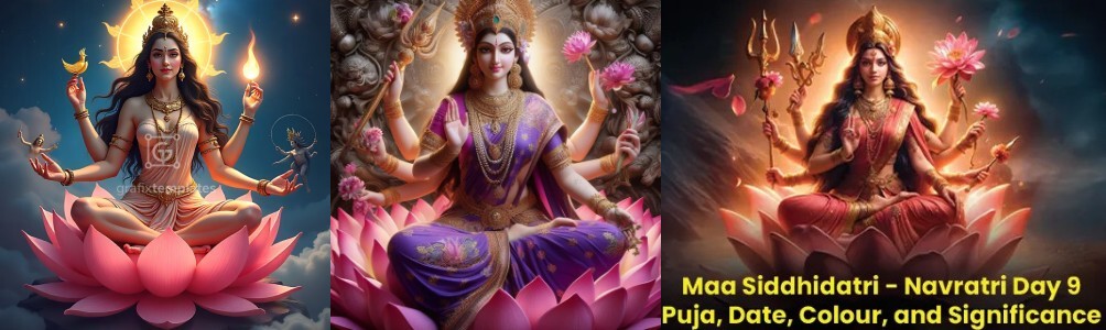 On the ninth and final day of Navaratri, the Mother is adored in her supreme form as Maa Siddhidatri, the granter of all siddhis (spiritual perfections and powers). She is seated upon a lotus, radiating divine grace, with four arms holding a mace, discus, conch, and lotus.