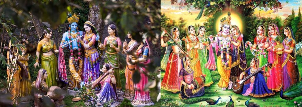 When in Kurukshetra, the Gopis pleaded to Shree Krishna. “You are the same Shyam Sundar,” they said, “and we are the same gopis—but the environment is different. Here, you are majestic, royal, formal. We miss the Shree Krishna who used to steal butter, who used to play the flute in the forests of Vrindavan. Please, come back to Braj with us.”