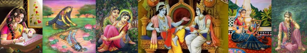 “Uddhava, tell our beloved Gopinath that the small signet ring once adorning His tender little finger has now become a heavy bracelet around my weary arm. My body has grown frail from the fire of separation. I survive only with the hope that one day He will return.