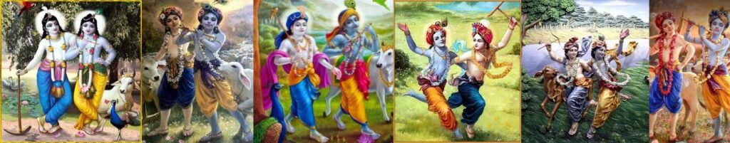 Krishna bowed to the elders, embraced His companions, blessed the children, and walked with everyone to Nanda’s house.